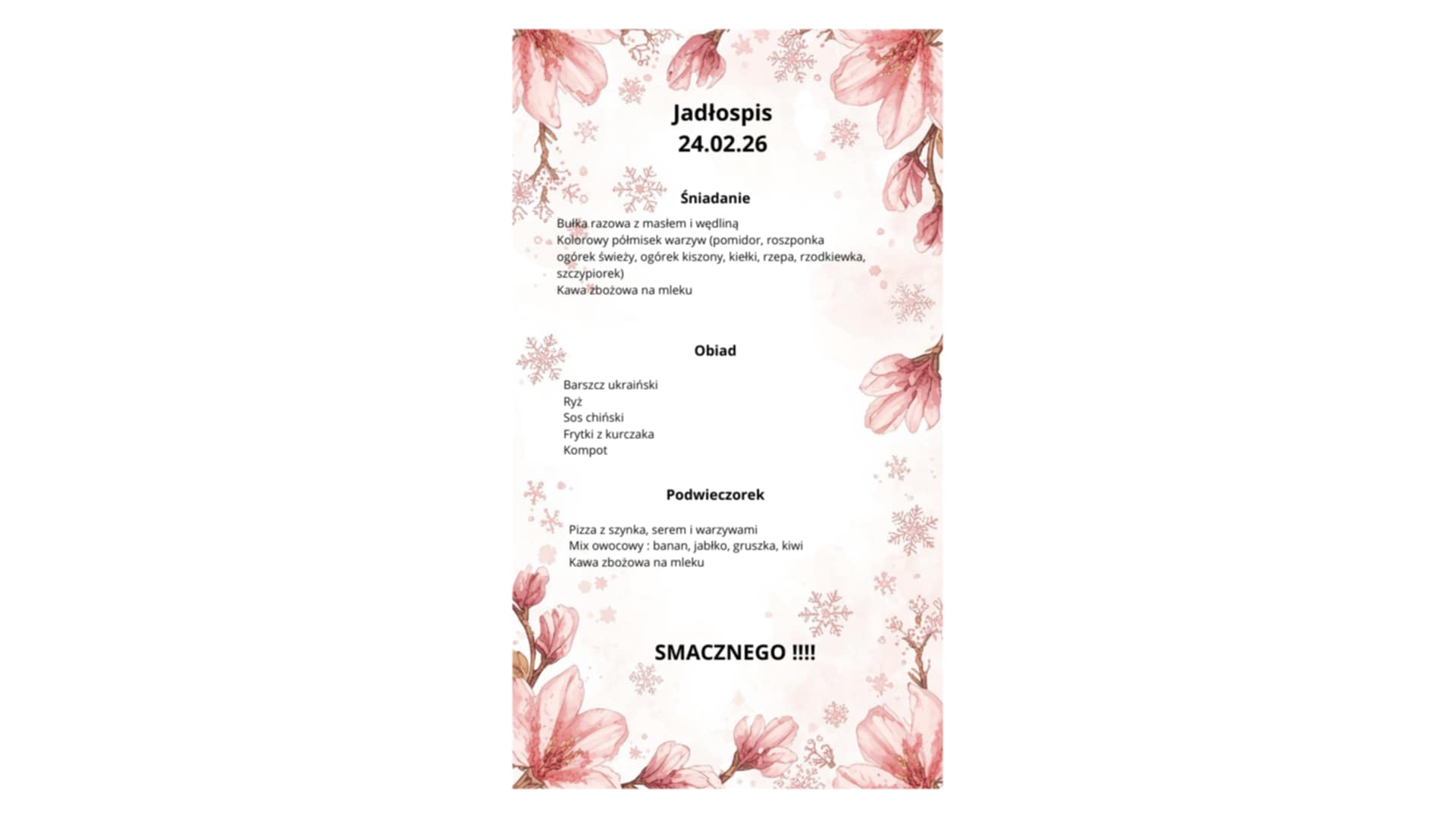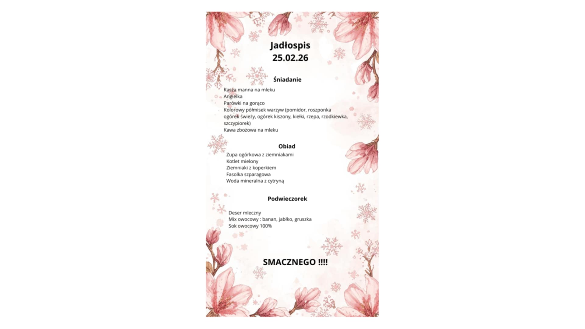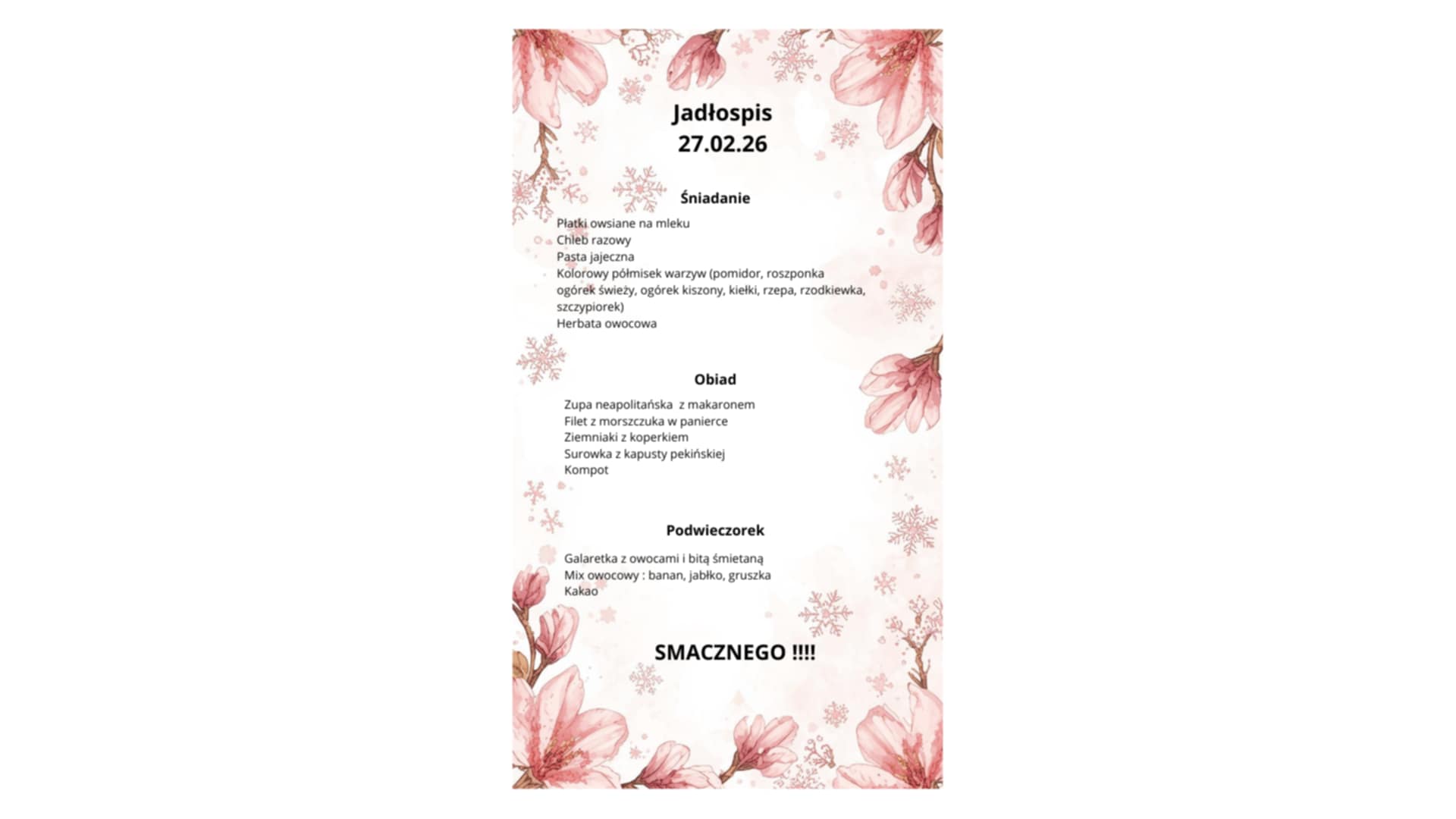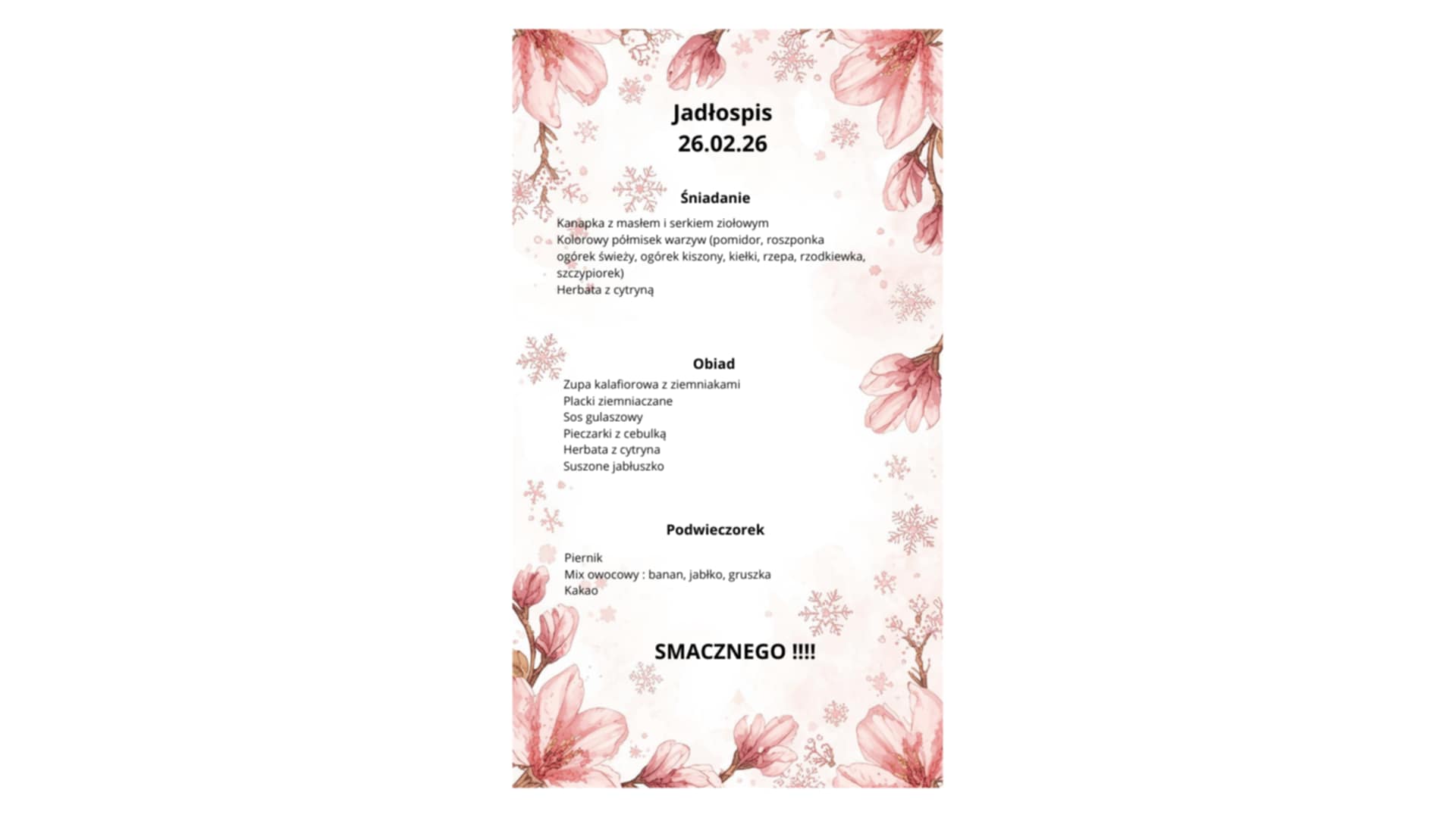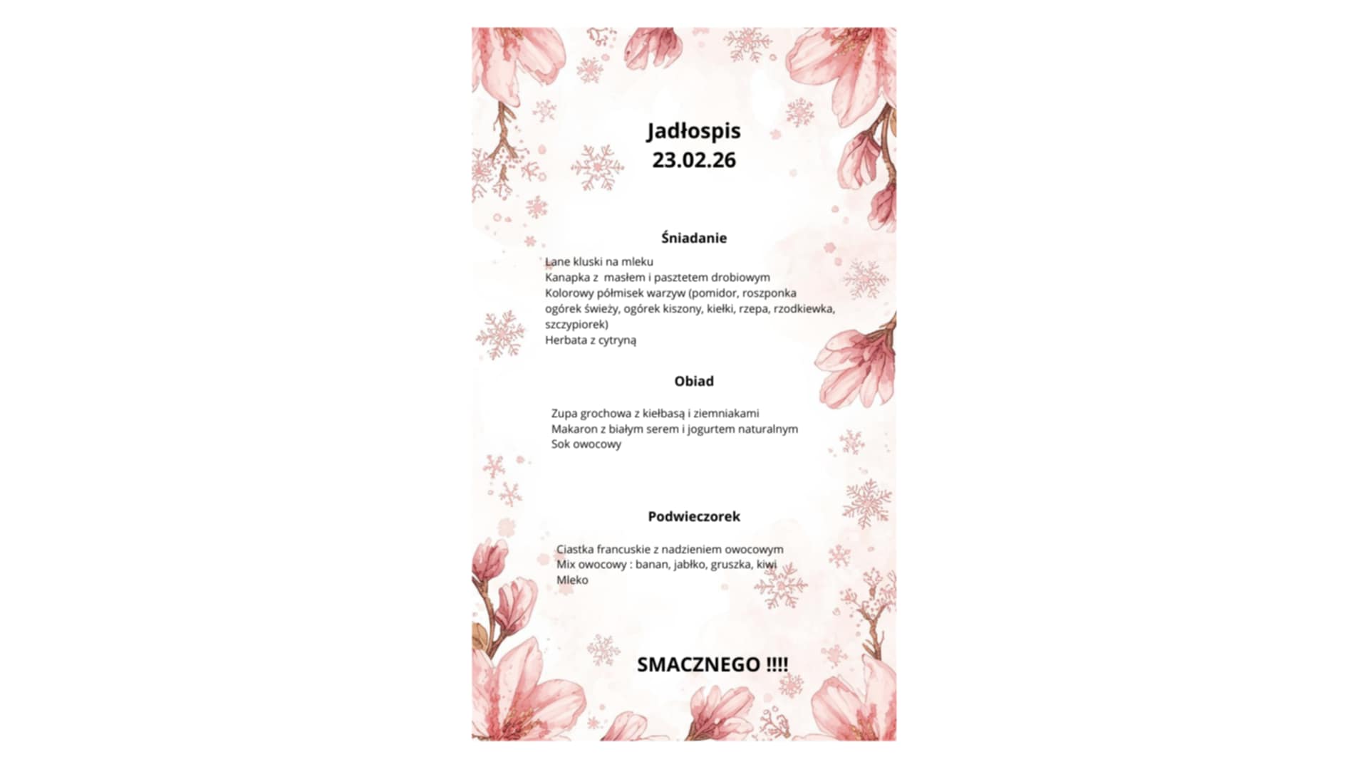 Opłata dotyczy uczniów, którzy nie mają nieobecności i nadpłat. Opłatę za posiłki należy dokonać do 20-go lutego 2026 r.