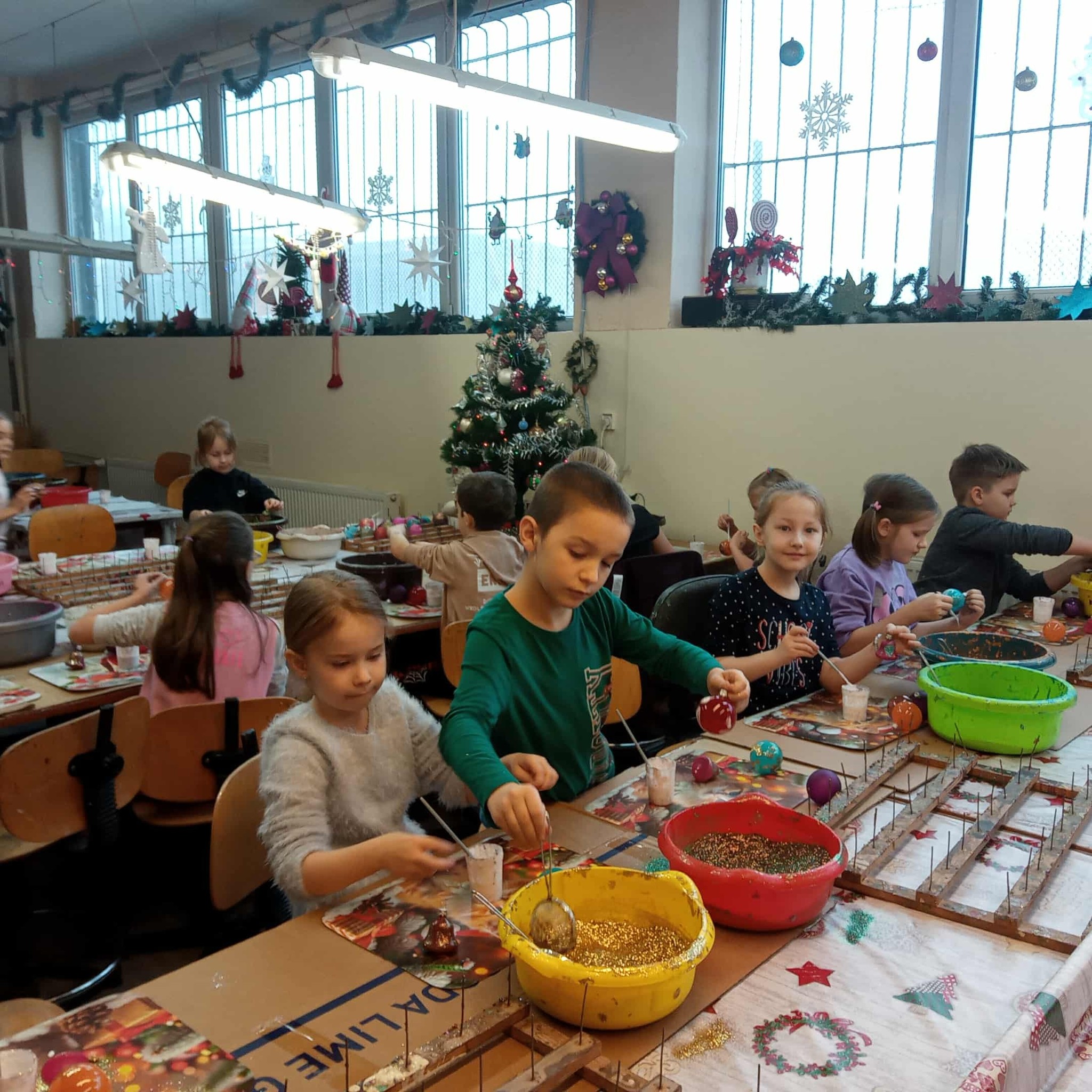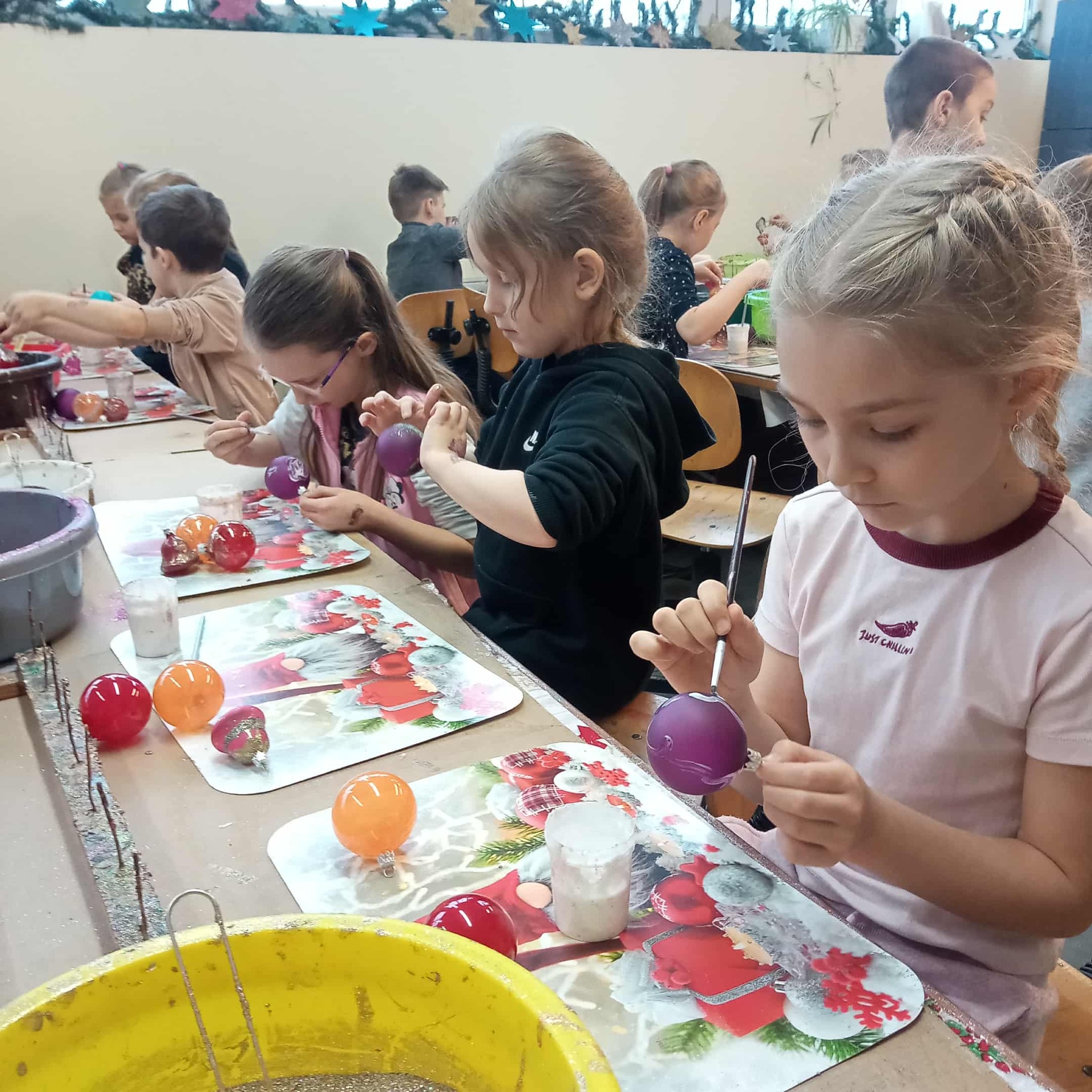 4 grudnia 2025 r. uczniowie klasy 1a odwiedzili fabrykę bombek w Piotrkowie Trybunalskim. Podczas wycieczki dzieci zobaczyły, jak powstają ręcznie robione ozdoby – od szklanej rurki po gotową, kolorową bombkę. Największą atrakcją były warsztaty, na których każdy mógł własnoręcznie ozdobić swoją bombkę. Na pamiątkę wszyscy zabrali ze sobą stworzone przez siebie ozdoby, a na zakończenie odwiedzili firmowy sklepik. Kolorowe bombki wykonane przez uczniów z pewnością ozdobią tegoroczne choinki.