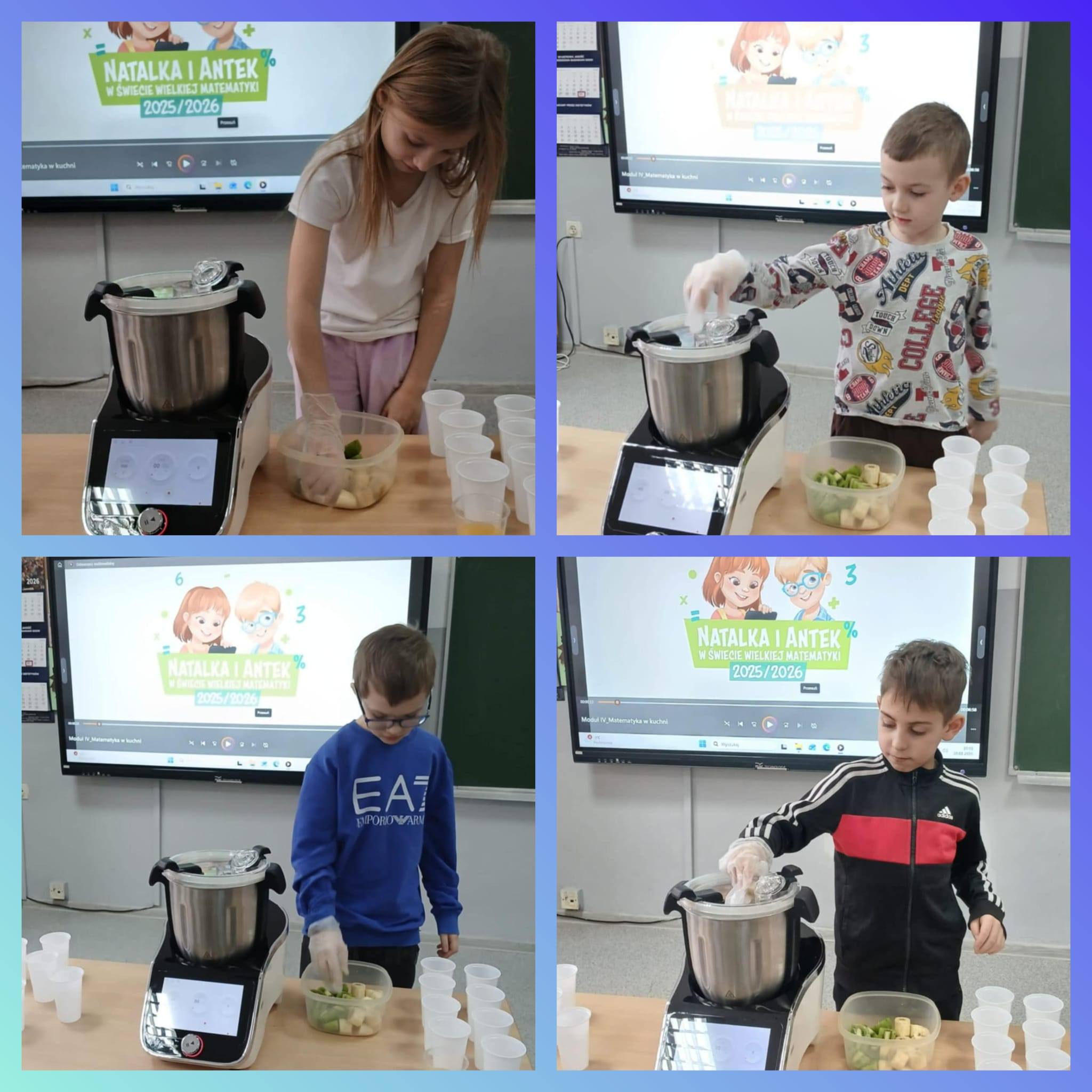 Tak! Kolejny moduł za nami! Tym razem zmierzyliśmy się z modułem „Matematyka w kuchni” Klasy II a i III b zamieniły sale lekcyjne w prawdziwą kuchnię pełną zapachów i uśmiechów. Dzieci z wielkim zaangażowaniem czytały matematyczne przepisy, mierzyły, ważyły i odliczały składniki oraz proporcje, ucząc się przy tym współpracy i pracy zespołowej. Efektem wspólnych działań były pyszne soki i sałatki owocowe, które z wielkim apetytem wypiliśmy i zjedliśmy. Było smacznie, zdrowo i kolorowo.