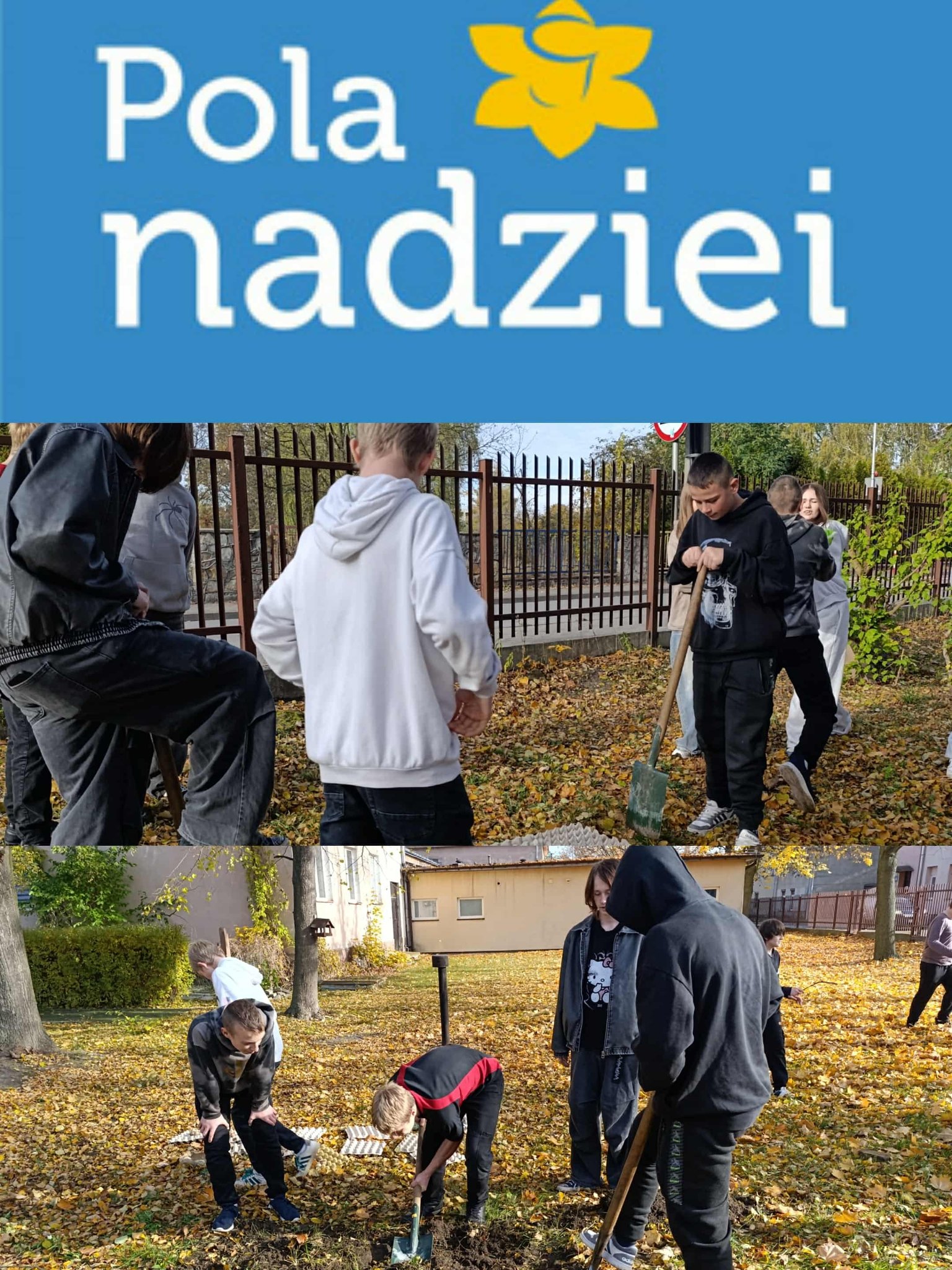 Uczniowie klasy 8 wzięli udział w sadzeniu żonkili w ramach akcji „Pola Nadziei” – ogólnopolskiej kampanii wspierającej hospicja i szerzącej ideę niesienia pomocy osobom chorym i potrzebującym.