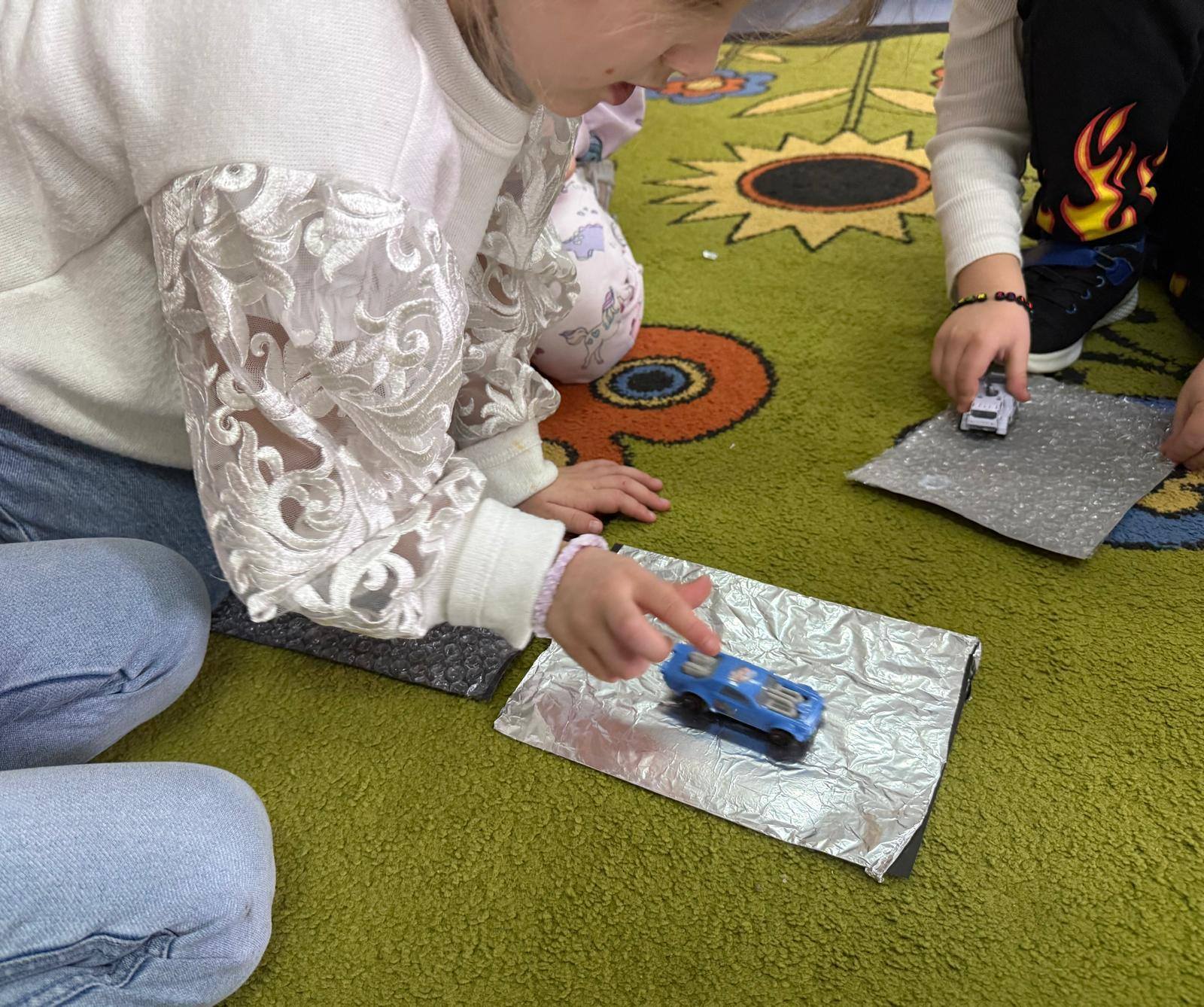 Tym razem nasze przedszkolaki wkroczyły w fascynujący świat ruchu i jego praw. Zajęcia miały formę zabawy badawczej, dzięki czemu dzieci mogły samodzielnie doświadczać, obserwować i wyciągać wnioski. Podczas wspólnych eksperymentów rozwijały swoją ciekawość świata, uczyły się współpracy w grupie oraz doskonaliły logiczne myślenie. Nauka przez działanie to najlepsza przygoda – a nasi mali odkrywcy spisali się znakomicie!