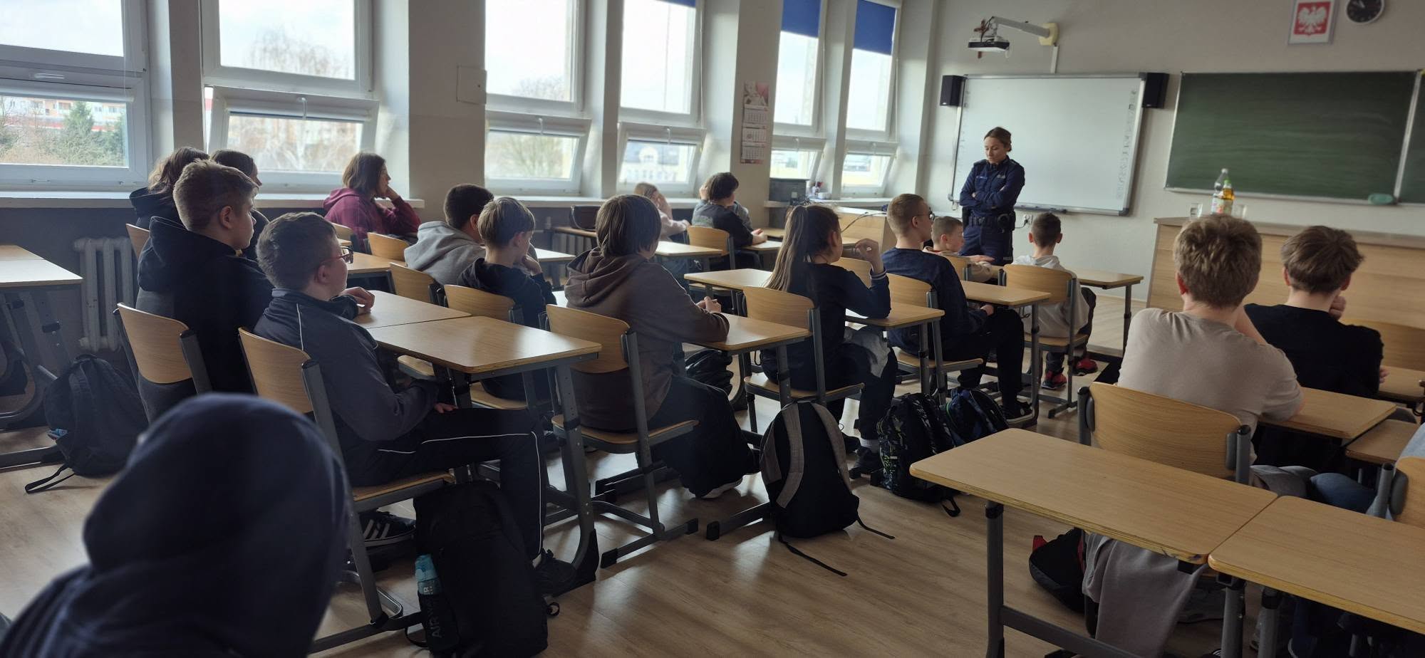 Uczniowie klas 7 wzięli udział w spotkaniu z przedstawicielem policji, podczas którego poruszono niezwykle istotne tematy związane z odpowiedzialnością prawną nieletnich. Młodzież dowiedziała się, jakie konsekwencje mogą wynikać z niewłaściwych zachowań, jak unikać zagrożeń oraz gdzie szukać pomocy w trudnych sytuacjach. Dziękujemy za cenne wskazówki i wartościową lekcję!